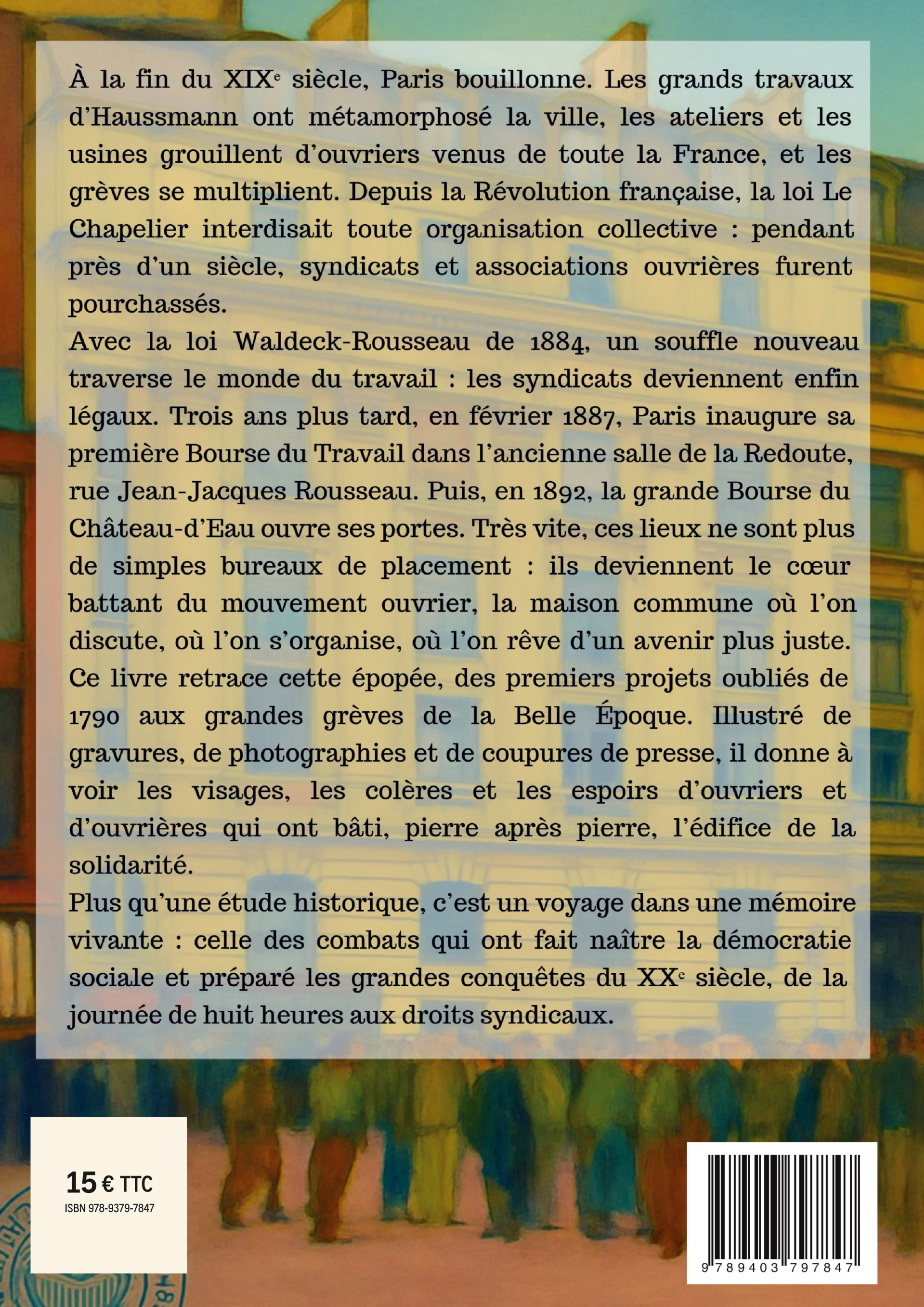 Les origines de la Bourse du Travail de Paris plonge le lecteur au cœur d’une aventure humaine et sociale fondatrice. À travers une enquête historique rigoureuse, nourrie d’archives et de témoignages, l’ouvrage retrace la naissance d’une institution unique au monde : la Bourse du Travail.